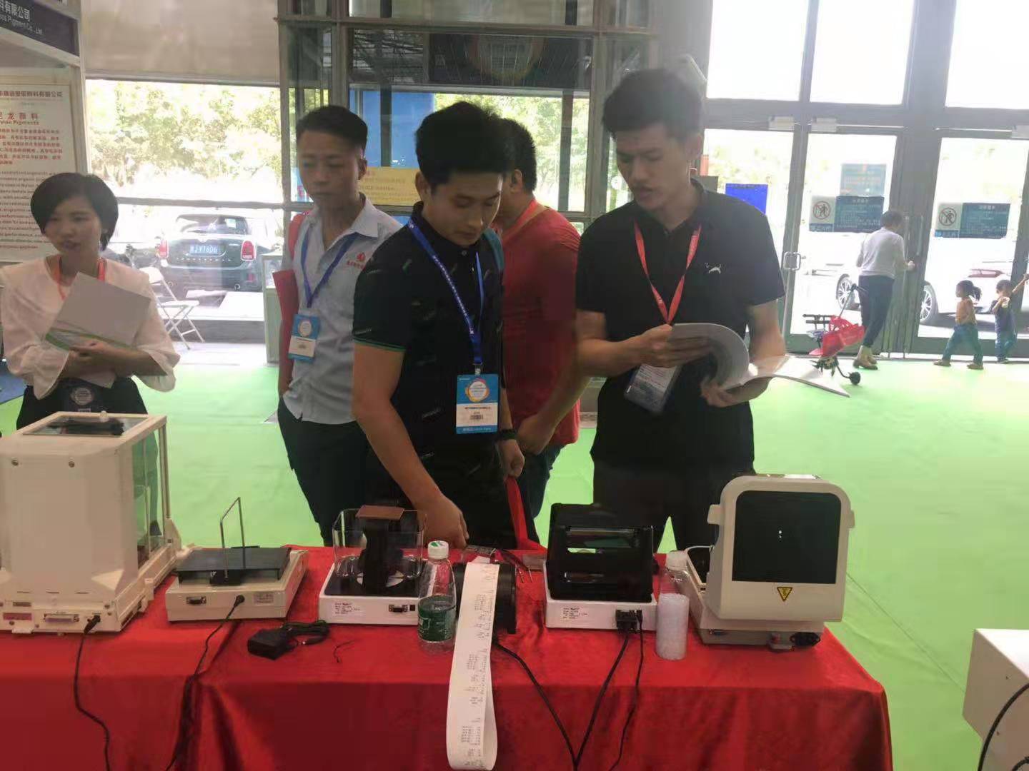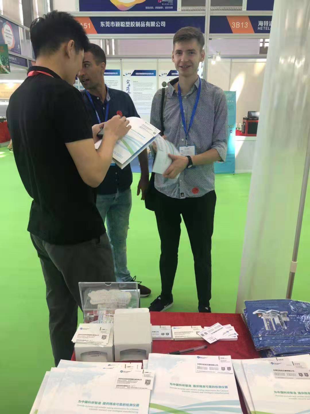 宏拓儀器專業(yè)工廠測試儀器展臺(tái)吸引一波又一波的參展觀眾,儀器工程師為現(xiàn)場參展觀眾講解萬能材料拉力試驗(yàn)機(jī),固體或液體高精度密度測試儀等儀器的使用流程,測試原理,儀器各類詳細(xì)參數(shù)和規(guī)格,現(xiàn)場參展觀眾為東莞宏拓儀器的測試儀器不斷的點(diǎn)贊。