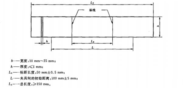薄膜形狀和尺寸要求:2、有些薄膜材料斷裂時(shí)有很高的伸長量,可能超過試驗(yàn)機(jī)的行程限度,此時(shí)允許把夾具間的初始距離減少到50mm。當(dāng)受試材料規(guī)范或常規(guī)質(zhì)量控制試驗(yàn)有規(guī)定時(shí),可使用啞鈴型試樣。