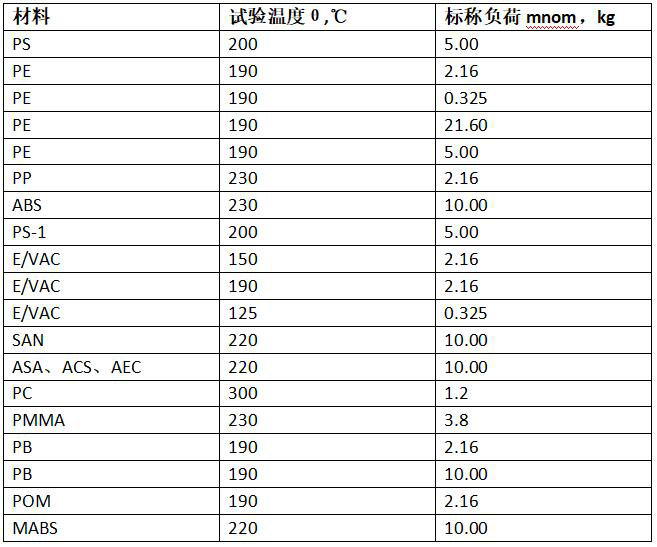 那么,如何找到塑料熔指的適合溫度與負(fù)荷?除了本身知道參數(shù)外,還可以通過以下行業(yè)常規(guī)的熔融指數(shù)儀常見的塑料對應(yīng)溫度與砝碼:如圖