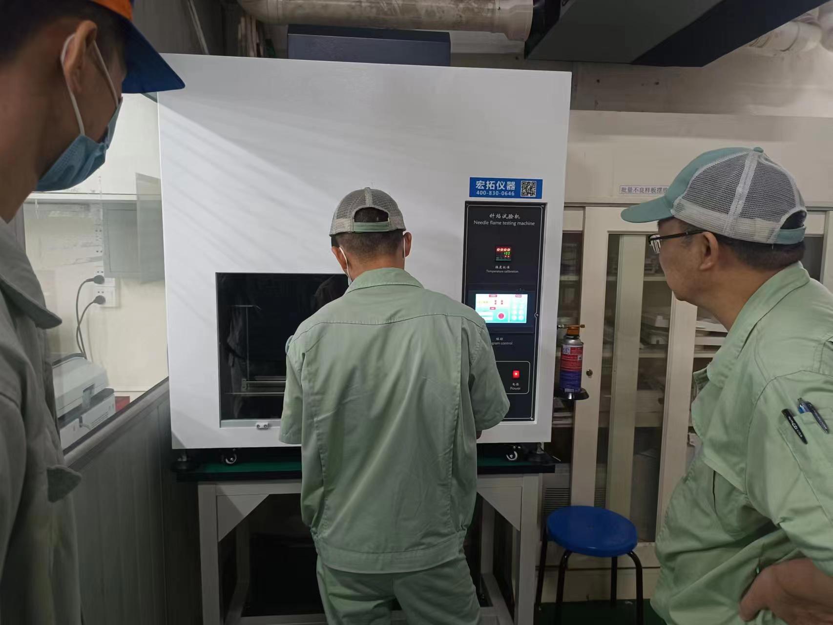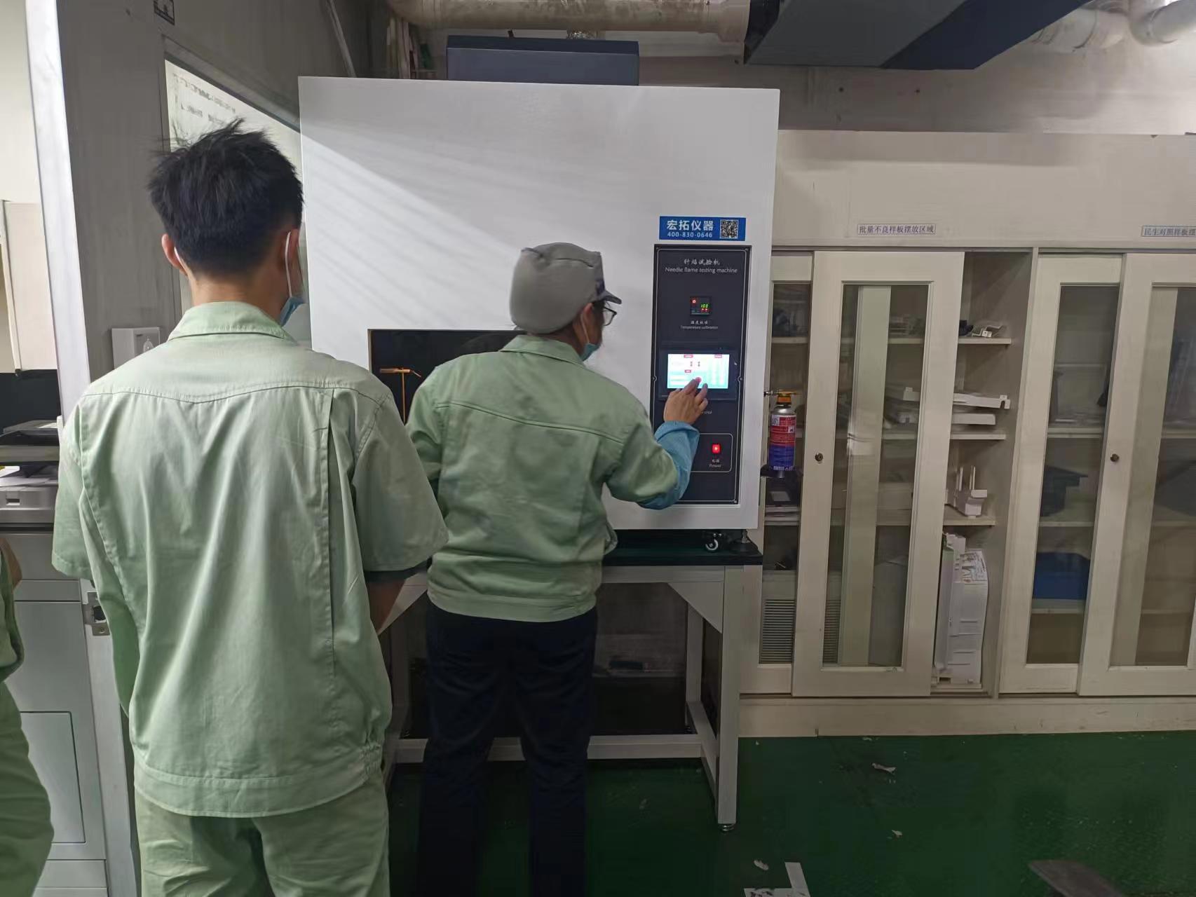廣東松下環(huán)境系統(tǒng)有限公司工作人員在宏拓儀器的工作人員指導下練習操作HT-5169T-N型針焰試驗儀